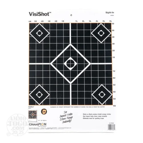 This is aChampion VisiShot Sight-in Target 10 Pack.VisiShot target technology makes spotting scopes and trips down the range to check shot placement a thing of the past. Bright orange circles appear from shots on black. These targets come packaged 10 targets to a pack.