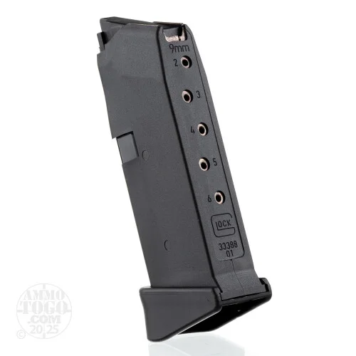 Is your pinky feeling left out when shooting your Glock 43? Get a grip with these ergonomic factory mags, which feature an extension below the floorplate that allows you to wrap your whole hand around the gun. This trades a bit of concealability for improved handling. These single stack magazines hold 6 rounds of 9mm Luger ammo and can only be used with the G43 due to their unique dimensions.