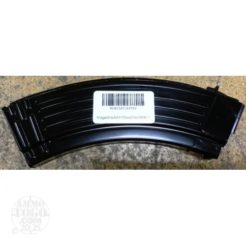 rThis magazine holds 30 rounds and is compatible with all standard AK-47s. Its feed lips are reinforced for greater longevity, and the steel it is made of has been finished with black. This mag is easily wielded thanks to its ribbed exterior, which also strengthens it. It’s a great range mag, just a real meat and potatoes chunk of solid metal that’ll work great in your rifle. Make sure to pick something up to put in it while you’re here, too!
