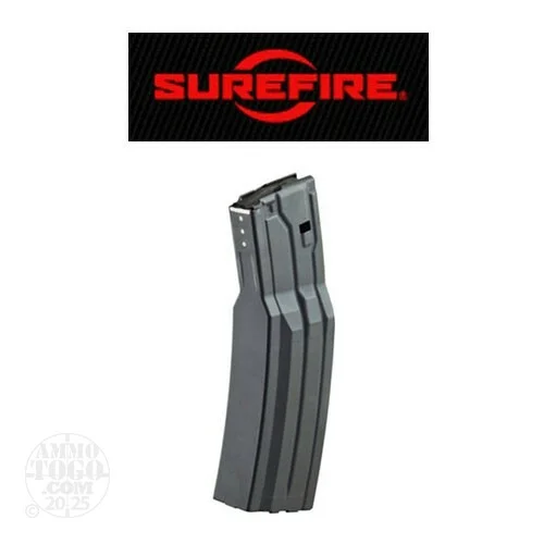 This is aSurefire AR-15 .223 Aluminum100rd. High Capacity AR-15/M16 Magazine Grey. The SureFire high-capacity magazine for 5.56×45 mm (.223 Remington) ammunition, also available in a 60-round version, is compatible with M4/M16/AR-15 variants and other firearms that accept standard STANAG 4179 magazines. Constructed from Mil-Spec hard-anodized aluminum, they feed smoothly and reliably due to optimal geometry, non-binding coil springs, and ingenious nesting polymer followers. The long-lasting springs are cadmium coated for low friction and excellent corrosion resistance. Magazines require no lubricants and can be easily disassembled without tools for cleaning. SureFire High-Capacity magazines provide distinct tactical advantages: increased initial firepower in ambush situations; fewer reloads overall, which means less downtime and target distraction in a firefight; fast and easy magazine insertion, even with a closed bolt; less bulk compared to drum mags, enabling a normal weapon grip.