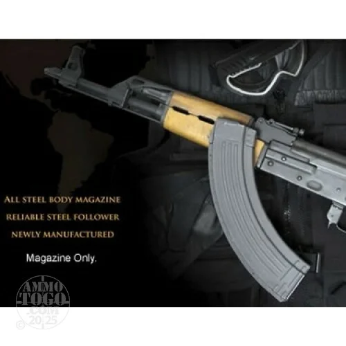 This is a Military AK-47 30rd. Mag. This mag is manufactured in Korea and is imported by American Tactical Imports (ATI). It has a parkerized steel body and a steel follower. These are newly manufactured mags.