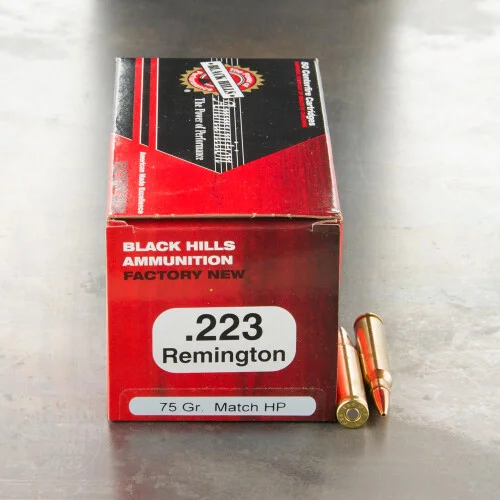 This 223 Rem cartridge by Black Hills Ammunition features a relatively heavy 75 grain projectile. The heavy match bullet sports a hollow point meplat, which isn’t meant to make its terminal performance more devastating but which does help it to counteract any wind deflection it may have incurred while in flight.