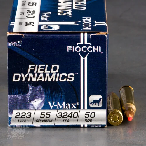 rThis round’s 55 grain V-MAX is Nebraskan manufacturer Hornady’s premier varmint hunting projectile. Balanced and streamlined, it maintains the velocity it needs to fly straight and expand devastatingly hundreds of yards out. The V-MAX owes its exceptional potency to its polymer tip, which rests on the rim of the jacket and outstretches into a precision formed hollow within the swaged lead core. There the tip dangles, waiting until impact so that it can store up massive energy before making contact, and perpow — virtually instantaneous fragmentation that sends rodents flying and coyote packing.