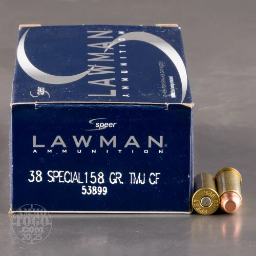 When buying training ammo in bulk, you can never go wrong by sticking to a high quality brand which has been trusted to supply law enforcement organizations and training schools for decades. This 1,000 count pack of .38 Special rounds is manufactured under Speer’s Lawman brand which uses the same high grade, American made components as Federal and CCI. These include reloadable brass casings, clean-burning powder, and non-corrosive Boxer primers. The cartridge profile is topped with a 158 grain total metal jacket (TMJ) projectile which is completely encapsulated by a strong copper jacket.