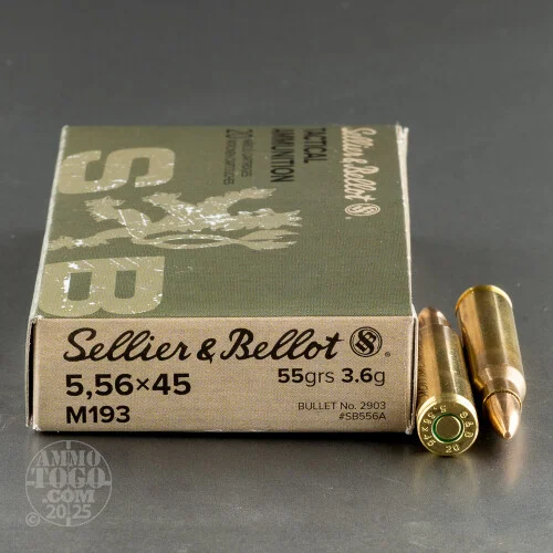 rThis is a true M193 spec cartridge, with a 55 grain bullet that is hardened by a coper-zinc alloy jacket. This is the same type of cartridge issued by the U.S. Army for the M16, although Sellier & Bellot’s load offers a slightly peppier muzzle velocity than average at 3,301 fps (out of a 23.5 inch barrel). By our calculations that gives this round a G1 ballistic coefficient of 0.254, which means its FMJ bullet needs to rise by no more than 1.5 inches en route to a 200 yard target, transfers a crushing 500 ft lbs of energy at 360 yards, and remains supersonic until nearly 750 yards. You can certainly apply that sort of ballistic and terminal performance toward target practice, but it’ll prove immensely handy if you ever need to protect yourself and your own as well.