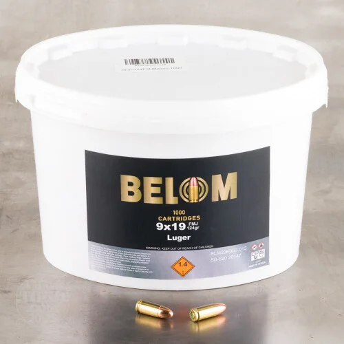 To heck with measly boxes of 50. You want to pry the lid off a literal bucket of ammo and blast targets until the cows come home, go to bed, wake up the next morning, and make breakfast. You want a 1,000 round bucket of 9mm ammo by Belom!