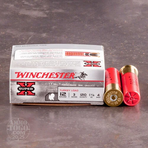 This is 12 Gauge Winchester Super-X 3″ 1 7/8oz. #4 Turkey Load Ammo.Winchester Super-X Turkey Loads are packed with all the hard-hitting, bird-bagging ingredients you need to satisfy your taste for smoked turkey. Copperplated hard shot for longest range, hardest hitting pattern, with greatest number of pellets on target. Grex buffering improves performance of turkey chokes and protects shot for tightest long range pattern. This ammo comes packed in 10rd. boxes.
