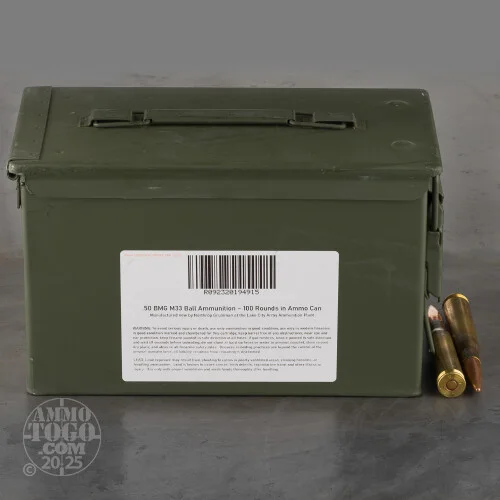 rThese are M33 rounds, with 660 grain projectiles that are capable of delivering 12,413 ft lbs muzzle energy. That means that this ammo is not only ideal for recreational shooting, but also capable of taking down most anything that moves on land. The M33’s bullet wears a full metal jacket to prevent deformation and rapid fouling of the bore. Its core is made of soft steel rather than traditional lead, so expect this ammo to attract a magnet.