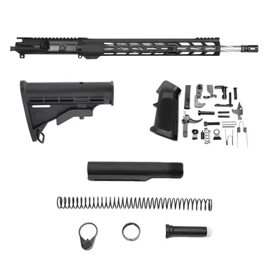 18″ AR 15 .223 Wylde Rifle Build KitEverything you need to finish your lower—built for accuracy, built to last.The 18″ AR-15 .223 Wylde Rifle Build Kit from Black Rifle Depot includes everything you need to complete your stripped lower receiver with precision, reliability, and value in mind. This kit is centered around our premium 18″ .223 Wylde Spiral Fluted Midlength M-LOK Upper Assembly, delivering sub-MOA accuracy with match-grade ammo and proper technique. The stainless barrel with a 1:8 twist rate offers versatility with both .223 Rem and 5.56 NATO rounds.Included is a complete lower parts kit featuring a crisp 6.5lb trigger, an AR-15 carbine buffer tube kit with a Mil-Spec 6-position receiver extension, and a durable LE-style Mil-Spec adjustable stock. Rounding out the kit is a Black Nitride .223/5.56 BCG, charging handle, and stainless steel gas system, pre-assembled with a low-profile nitride gas block.Kit Includes18″ .223 Wylde Spiral Fluted Upper Assembly (Midlength gas system, M-LOK handguard, stainless barrel).223/5.56 Black Nitride Bolt Carrier Group (9310 bolt, MPI inspected)AR-15 Charging Handle (7075-T6 aluminum, hard coat anodized)AR-15 Carbine Buffer Tube Kit (6-position receiver extension, 3 oz buffer, carbine spring)LE-Style Adjustable Stock (Mil-Spec, high-grade polymer, 6-position, style may vary)AR-15 Lower Parts Kit (Complete kit w/ 6.5lb trigger, Mil-Spec components)Stainless Steel Gas Tube Assembled Low Profile Gas Block (.750 or .625 depending on build)Note: BCG and charging handle are included. Handguard and stock styles may vary by batch.Backed by a limited lifetime warranty and built using quality materials and proper assembly practices, this BRD build kit delivers performance you can trust from the bench to the field.