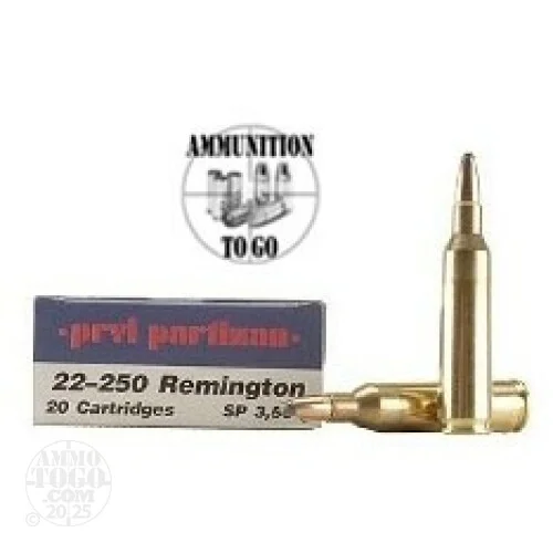 This is .22-250 Prvi Partizan 50gr. Soft Point Ammo.Since 1928, Prvi Partizan has been producing custom ammunition in Serbia for competition, indoor ranges and big game hunting. Soft point bullets feature a soft lead exposed nose that create controlled expansion and a uniform mushroom. Non-corrosive. Reloadable brass cases feature Boxer primers. This ammo has a sealed primer and annealed case neck. It is extremely high quality ammunition. This ammo comes packed in 20rd. boxes, 1000rds per case.