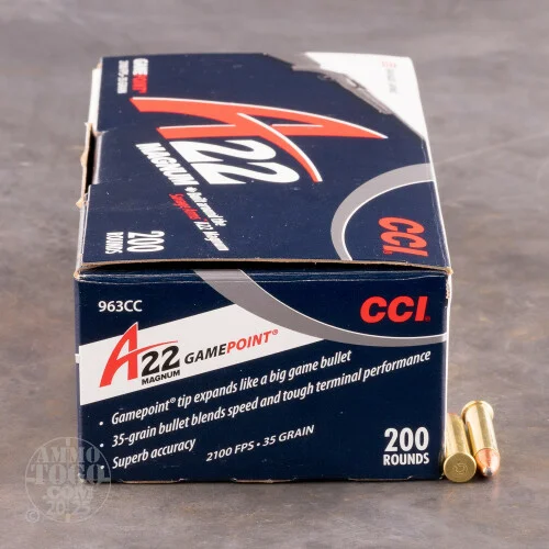 This .22 WMR ammunition was specially designed by CCI for the Savage A22 rifle but also works well in a variety of other long guns. Each cartridge in this box of 200 fires a light 35 grain soft point bullet that delivers excellent performance against small game. The soft point expands reliably for lethal effect thanks to the .22 Magnum’s high velocity but does not fragment and damage meat quite as heavily as some hollow point varmint projectiles. CCI ammunition is loaded in Lewiston, Idaho and has an excellent reputation for reliability.
