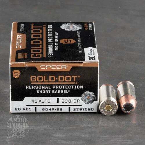 Speer’s Gold Dot Short Barrel line of ammunition would still make an effective choice for self-defense with a full-size 45 ACP handgun. But if you carry a smaller piece of hardware for personal protection, you will find this ammo’s lower felt recoil of especial value while you are trying to direct rapid yet accurate fire at an immediate threat to your physical safety.