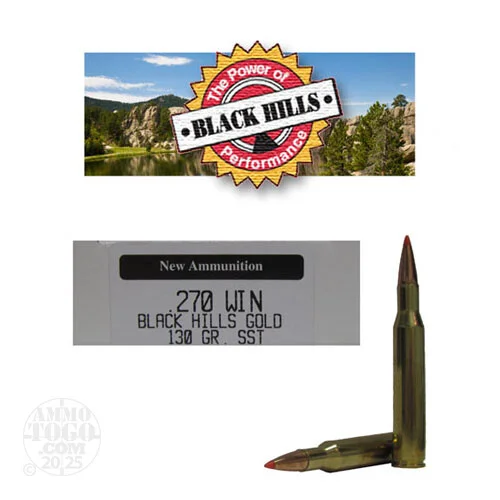 This is .270 Win. Black Hills Gold 130gr. New Seconds Hornady SST Polymer Tip Ammo. This ammo goes through Black Hills stringent inspection tests and due to minor cosmetic blemishes on the bullet or casing, it then becomes factory seconds (white box) ammo. Performance is not affected. This is premium ammo, with a great savings.Black Hills Ammunition is highly respected all over the country. Black Hillssupplies all five US military branches with ammunition. There are many Law Enforcement Agencies using Black Hills nationwide. Theyonly use the best components available. This factory new ammo is very accurate, dependable, brass cased, 100% non-corrosive, boxer primed and reloadable. This ammo comes packed in 20rd. boxes.