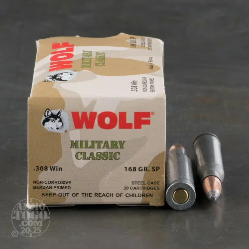 Fans of the CETME or DSA-built FAL will love this box of .308 Winchester rounds for big game hunting or general purpose plinking. Each round is built using a non-reloadable casing that is made of steel for lower production costs which is passed on to shooters. The case is equipped with a non-corrosive Berdan primer that won’t expel any barrel-eating phosphate when fired. Atop the round sits a 168-grain bullet with an exposed lead tip designed to expand on impact creating a larger wound channel.