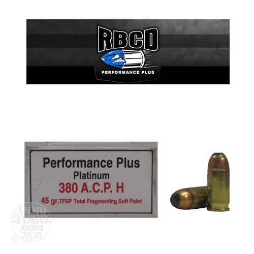 380 Auto RBCD Performance Plus 45 Grain Total Fragmenting Soft Point Ammo – 20 Rounds