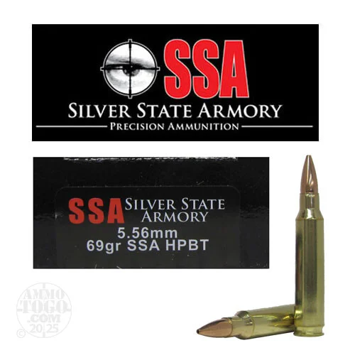 This is 5.56 Silver State Armory 69gr. Hollow Point Boat Tail Ammo. Muzzle velocity reaching 2,780fps from a 16