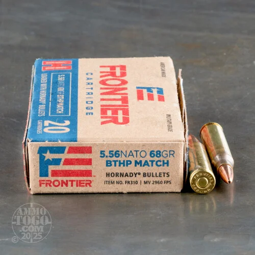 This 5.56×45 cartridge from Hornady’s Frontier line of ammunition is built for competition, affordable enough for range training, and wholly suited for toppling coyotes to boot. Its 68 grain projectile has a uniformly distributed swaged core and intensely concentric AMP jacket to give it exceptional rotational stability, as well as a tapered base that amplifies its ballistic coefficient to an impressive .355.