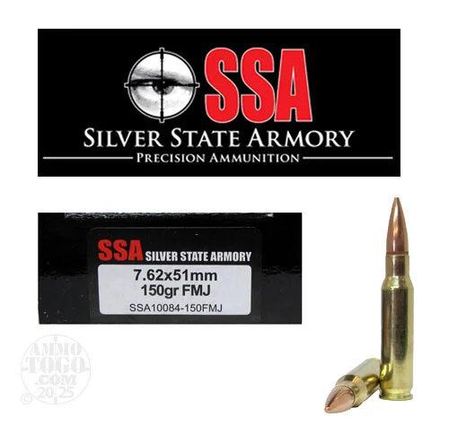 7.62 x 51mm Silver State Armory 150 Grain FMJ Ammo – 20 Rounds