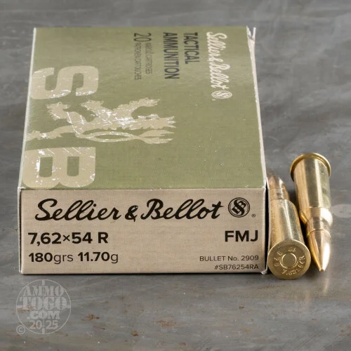 20 Rounds – 7.62x54R Sellier & Bellot 180 Grain FMJ Ammo