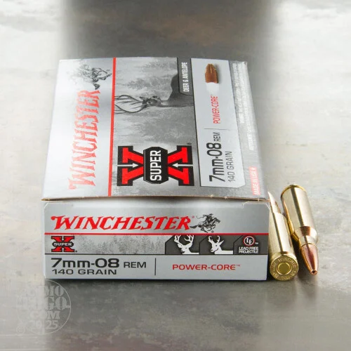 This is7mm-08 Rem. Winchester Super-X 140gr. Power Core Lead Free Hollow Point Ammo. This load is for hunting small to medium game. Since 1922, Super-X ammunition has provided exceptional quality and outstanding performance for all types of hunters and shooters who rely on its time proven dependability backed by legendary excellence. This ammo is brass cased, boxer primed, non-magnetic, and non-corrosive. It comes packed in 20rd. boxes. Muzzle Velocity: 2800 fps.
