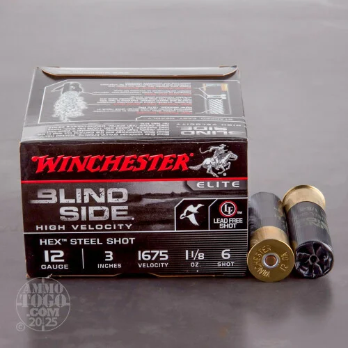 Winchester Elite Blind Side is manufactured with an exclusive Diamond-cut wad which manages shot density and stretches the “kill zone†by a whopping 25 percent. A hinged wad column also increases velocity while reducing perceived recoil, allowing faster shot recovery and accurate follow-up shots.