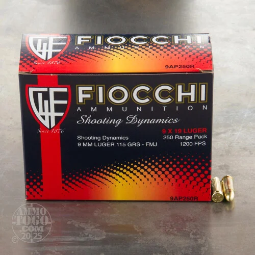 9mm Fiocchi 115 Grain FMJ Ammo – 250 Rounds