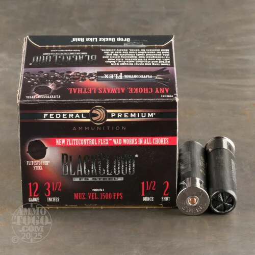 rInside the hull is 1-1/2 ounces of #2 sized steel shot pellets, 40% of which have the sharp Flitestopper belt for increased energy transfer in big geese. Steel shot pellets present less longterm damage to the environment and are permitted for use in lead-free hunting areas. Federal’s Flitecontrol Flex wad protects the shot from flattening and exits the barrel while containing the shot, keeping it more tightly grouped until the shot exits the wad in a dense, effective cloud. The Flitecontrol Flex wad can be safely fired through a number of 12 gauge chokes including those with ventilation ports.