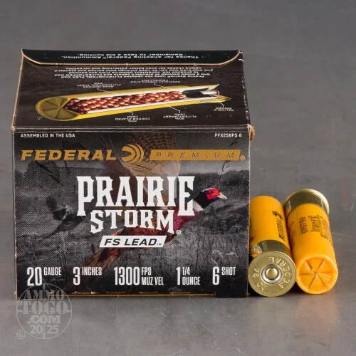 Federal Prairie Storm FS Lead is the one-two combo that pins pheasant down easy peasy! This Minnesota-made 20 Gauge hunting ammo wallops upland game with 1-1/4 ounces of two different types of #6 shot!