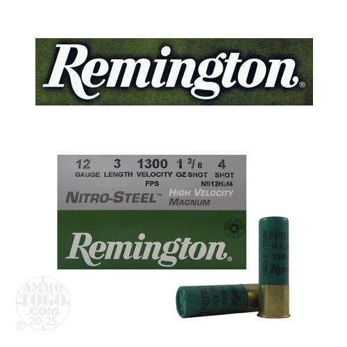 25rds – 12 Gauge Remington Nitro-Steel 3″ 1 3/8oz. #4 Shot Ammo