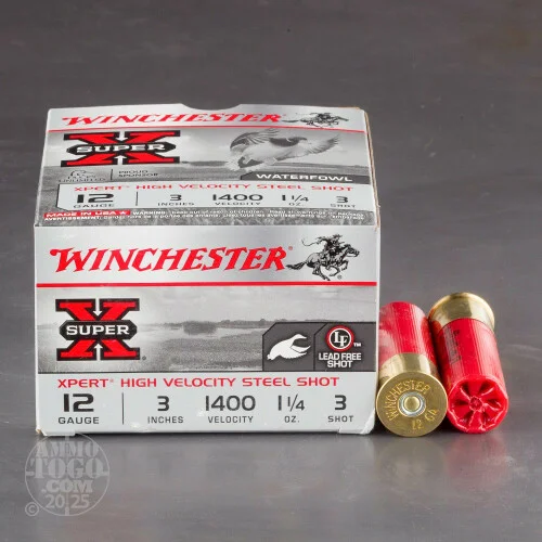 rThis three inch shell is loaded with 1 1/4 ounces of #2 shot. It’s a versatile size for hunting all sorts of ducks, whether decoys enter into the equation or not. Winchester’s modern propellant and efficient wad both lend themselves to tight, consistent patterns, and their primer is reliable enough that you won’t experience a fly away for want of proper ignition.