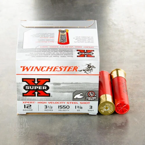 These powerful 12 gauge shells are made specifically for experienced sportsman and sportswomen armed with top tier shotguns aiming to take down waterfowl at otherwise unreachable distances. Each of these 3-1/2 inch high brass shotshells contains a whopping 1-3/8 ounces of relatively large #3 bird shot pellets. This unplated shot has undergone a hardening process which helps prevent fratricidal flattening that could cause erratic fliers or reduce terminal effectiveness.