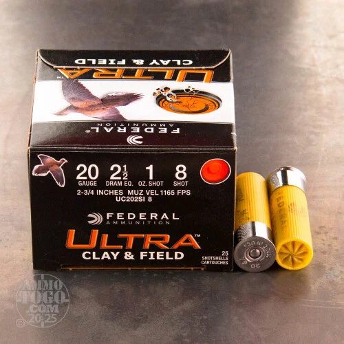 25rds – 20 Gauge Federal Ultra Heavy Field & Clay 2-3/4″ 1 oz. #8 Shot Ammo