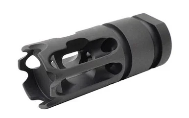 The development of the T3 compensator started with the need for a muzzle device that not only maintains a small size, but also performs well within its intended use. The T3 is a dual baffle compensator that directs expelled gasses to control muzzle direction. The initial baffle directs gas in a geometrical pattern that stabilizes the rifle system. The second baffle system channels gasses upward to compensate for muzzle rise. This gives the shooter the ability to decrease time between follow up shots and maintain control of muzzle direction. The T3 also mitigates some of the flash that is commonly associated with compensators.