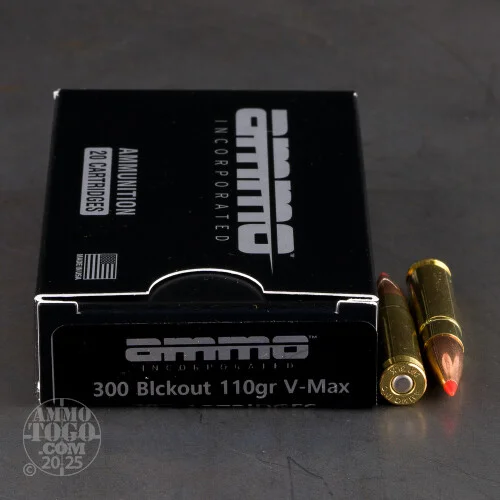 rThis cartridge’s supersonic 110 grain projectile exhibits awesome in-flight rotational stability. Hornady’s Advanced Manufacturing Process jacket possesses virtually zero flaws that could throw the V-MAX’s trajectory off balance, and the bullet’s lead core is just as evenly distributed. The bullet’s sharp tip minimizes drag to promote greater energy transfer on impact. It also slides deep down into the swaged lead core’s precision-formed cavity on impact, ultimately forcing the entire projectile to burst apart into shrapnel. Very deadly, if you happen to be a woodchuck, coyote or other pest.