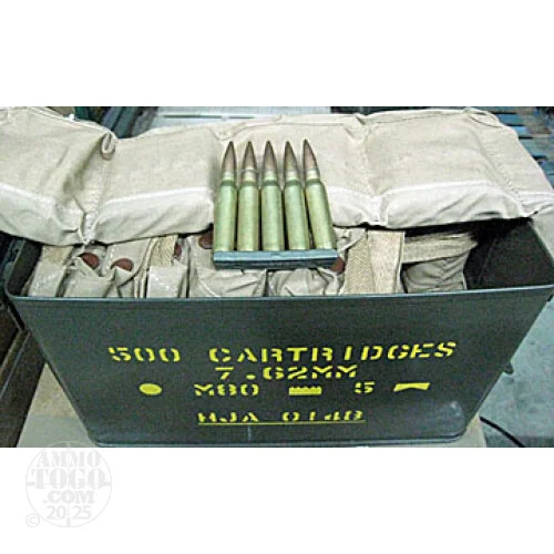 This is .308 Singapore Military 147gr. FMJ Ammo on striper clips in 5 pocket bandoleers. This ammo was manufactured in Singapore. This ammo is brass cased, berdan primed and 100% non-corrosive. It will come packed in a 50cal. ammo can.