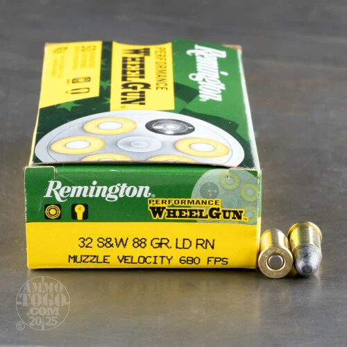 Practicing your marksmanship has never been easier or more affordable than with this 500-round bulk case of this 32 S&W Performance Wheelgun ammo by Remington. Designed specifically for revolvers, each Boxer-primed brass casing is topped with a 88gr. lead round nose (LRN) projectile. Whether you are range training or plinking, these cartridges will leave obvious circular holes in your targets and take out tin cans with the best of them. Each bullet leaves the muzzle at 680 fps with 90 ft/lbs of corresponding energy, making them ideal for close range target shooting. Remington uses their own Kleanbore primers that will not rust the inside of your beloved revolver. Order your 500-round case of this 32 S&W ammo, and get to the range!