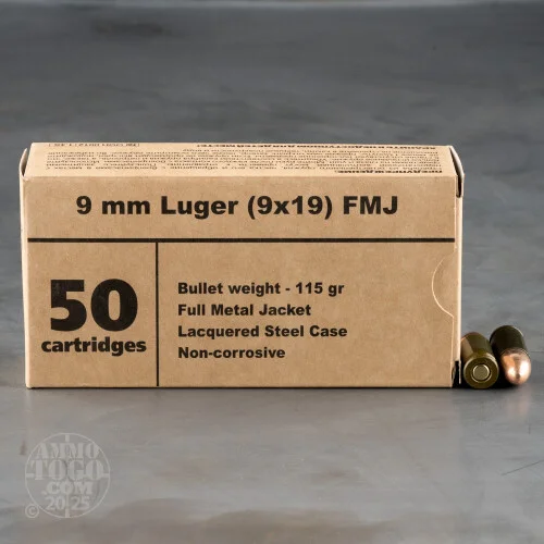 rThis round’s 115 grain FMJ bullet has what is known as a “bimetal†jacket. It does have a very thin layer of copper on its exterior to reduce barrel fouling, but it’s predominantly made out of soft steel. A bimetal jacket won’t harm a pistol’s barrel, although you can count on it to attract a magnet.