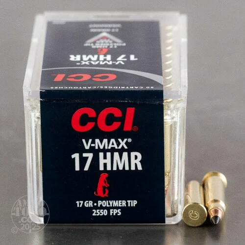 This is .17 HMR CCI V-max Polymer Tip Ammo. The 17-grain V-MAX bullet has a black polymer tip to increase the ballistic coefficient. It is brass cased andcomes 50rds. per box.