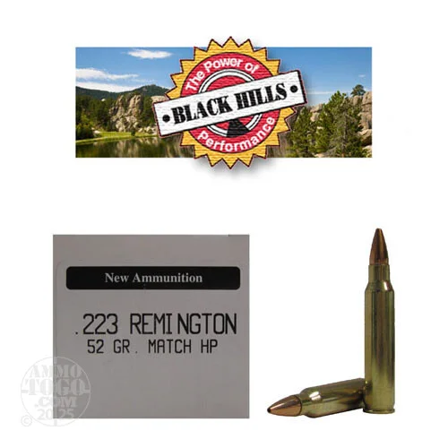 This is .223 Black Hills 52gr. New Seconds (Cosmetic Imperfections) Match Hollow PointAmmo. This ammo goes through Black Hills stringent inspection tests and due to minor cosmetic blemishes on the bullet or casing, it then becomes factory seconds (white box) ammo. Performance is not affected. This is premium ammo, with a great savings. Black Hills supplies all five US military branches with ammunition. There are many Law Enforcement Agencies using Black Hills nationwide. They only use the best components available. Black Hills Ammunition is highly respected all over the country. This ammo is very accurate, dependable, 100% non-corrosive, boxer primed and reloadable. It comes packed in 50rd. boxes.