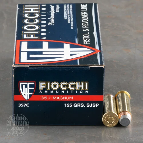 Fiocchi 357 Magnum 125 Grain Semi-Jacketed Soft Point. This ammo is manufactured by Fiocchi in Italy, and is excellent quality ammo. This ammo is clean and accurate. This ammo is brass cased, non-corrosive and 100% new factory fresh. This is some excellent target or hunting ammo for the price. Packed 50rds. per box.