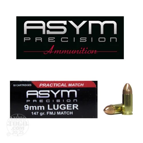 This is 9mm ASYM 147gr. Full Metal Jacket Practical Match Ammo.ASYM Practical Match combines a heavy 147 gr. Match FMJ with a fast burning powder. This load is purpose built to deliver the softest shooting minor power factor match load available for practical pistol competition. ASYM Practical Match is loaded using premium VihtaVouri powder, a match grade 147 FMJ, Starline brass, and match grade USA made primer. Every round is chamber checked and hand inspected to ensure flawless performance. This ammo is meticulously crafted from the finest components, offering unsurpassed performance, low muzzle flash, and clean burn. This ammo comes packed in 50rds. per box.