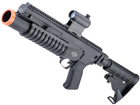 The complete launcher package comes with a lightweight polymer M203 grenade launcher, an M4 buffer tube, and an ergonomic adjustable length of pull stock. All that is needed to start raining BB fury upon your foes is the grenades themselves.