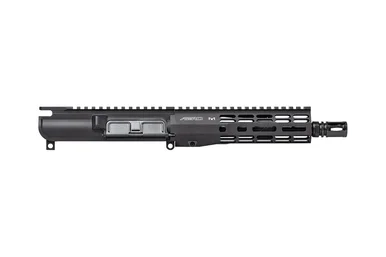 Aero Precision 8″ .300 BLK Complete Upper w/ No Forward Assist & M-LOK ATLAS R-ONE Handguard – BlackThis AR-15 Complete Upper Receiver, paired with the ATLAS R-ONE handguard streamlines the appearance of your next AR-15 build by removing the Forward Assist. By combining our lightest handguards and barrel profiles with the No Forward Assist Upper Receiver you can maximize the weight savings for your next build.Includes:AR15 Assembled Upper Receiver with Forward Assist7″ M-LOK ATLAS R-ONE Handguard8″ .300 Blackout CMV BarrelLow Profile Gas Block and Pistol Length Gas TubeProduct comes assembledThis complete upper does not include BCG or Charging Handle. These products may be selected as add-ons under theFINISH YOUR BUILDtabThe muzzle brake that comes with this complete upper receiver is NOT pinned nor welded to this barrel.AR15 Upper Receiver with Forward Assist Features:M4 Feedramps.250 takedown pin holesLaser engraved T-marksNo forward assist provisionsPort door installedATLAS R-ONE Handguard Features:Full top picatinny rail for optional attachmentsQuick disconnect sling socket at the 3, 6 and 9 o’clock positionsCompatible with low profile gas blocks1.3″ Inside diameter1.5″ Outside diameterCompatible with mil-spec AR15 upper receivers and barrels8″ .300 Blackout Barrel Features:Length: 8″Twist: 1 in 7Muzzle: 5/8×24 ThreadedMaterial: 4150 Crome Moly VanadiumFinish: QPQ corrosion resistant finish both inside and outGas Block: .750Gas Port: .109Gas System Length: PistolWeight: 18ozM4 Barrel ExtensionHP and MPI Tested