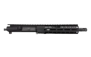 Aero Precision M4E1 Complete Upper 10″ .300 Blackout Barrel EM-9 Gen 2 Handguard – Anodized BlackrThis Complete Upper includes our Gen 2 Enhanced Handguard! Key features include the addition of quick disconnect sling sockets, enhanced milling design for grip and visual appeal and a new profile for the picatinny top rail.rIncludes:rrM4E1 Enhanced Assembled Upper ReceiverrEnhanced Handguard of choicer10″ .300 Blackout CMV BarrelrLow Profile Gas Block and Pistol Length Gas TuberProduct comes assembledrThis assembly does not include BCG or Charging Handle. These products may be selected as add-ons under the FINISH YOUR BUILD tabrThe muzzle brake that comes with this complete upper receiver is NOT pinned nor welded to this barrel. Per the National Firearms Act, the muzzle brake MUST be pinned and welded to achieve the necessary 16″ as defined by the ATF for a rifle build.rrM4E1 Upper Features:rrForged from 7075 T6 aluminumrPrecision machined to M4E1 specsrM4 feedrampsrMatte black hard coat anodized Mil 8625 Type 3 Class 2rLaser engraved T-marks (Anodized only)rComes assembled, with port door and forward assist installedrAccepts standard AR15/M16 componentsrHandguard mounting platform is forged into the receiverrWorks with Aero Precision handguards but also fits most BAR-system handguardsrBarrel nut and wrench are includedrrGen 2 Enhanced Handguard Features:rr1pc free float designrBuilt in anti-rotation tabsrScalloped railsrContinuous top railr1.78″ inside diameter fits most muzzle devices and 1.5″ suppressorsrCompatible with low profile gas blocksrGen 2 Feature – Quick disconnect sling socket at the 3, 6 and 9 o’clock positionsrGen 2 Feature – Additional milling along flats to aid with gripping and add visual appealrGen 2 Feature – New profile for the continuous picatinny top railrr10″ .300 Blackout Barrel Features:rrLength: 10″rTwist: 1 in 7rMuzzle: 5/8×24 ThreadedrMaterial: 4150 Crome Moly VanadiumrFinish: QPQ corrosion resistant finish both inside and outrGas Block: .750rGas Port: .0935rGas System Length: PistolrWeight: 21ozrM4 Barrel ExtensionrHP and MPI TestedrrSpecifications:rrShipping to FFL Dealer Required NorMade In America? YesrPlatform AR15rSeries M4E1rCaliber .300 BlackoutrBarrel Length 10″rWeight(s) KeyMod: 43.20 oz / M-LOK: 43.20 oz / Quad Rail: 44.80 oz