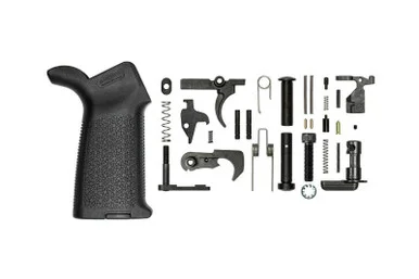 Aero Precision M4E1 MOE Lower Parts KitAero Precision’s line of Lower Parts Kits featuring Magpul™ Grips is designed to be versatile for your needs. Each kit is available with MOE® and MOE SL® Grip Options in Black and FDE. Buy with our tried and true mil-spec Fire Control Group or save for an upgraded trigger with our MINUS FCG offerings.This M4E1 Lower Parts Kit includes the components needed to assemble an Aero Precision M4E1 Lower Receiver or similar mil-spec lower receiver. It features a Magpul MOE® Grip. This kit DOES NOT include a trigger guard as the trigger guard is built in to the M4E1 Lower Receiver. See below for a full list of included components.IncludesMagpul MOE® Grip in Black or FDETakedown PinPivot PinTakedown/Pivot DetentTakedown/Pivot SpringBolt CatchBolt Catch BufferBolt Catch Roll PinBolt Catch SpringMagazine Catch BodyMagazine Catch ButtonMagazine Catch SpringBuffer RetainerBuffer Retainer SpringSafety SelectorSafety Selector SpringSafety Selector Detent4-40 Set Screw (for threaded takedown pin detent hole)TriggerHammerTrigger SpringTrigger/Hammer PinsHammer SpringDisconnectorDisconnector Spring