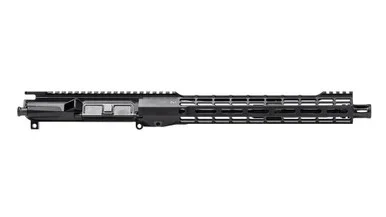 Aero Precision M4E1 Threaded Complete Upper 12.5″ 5.56 BRL 12″ M-LOK AR15 ATLAS S-ONE HG – Anodized BlackThis complete upper includes our ATLAS S-ONE Handguard! The S-ONE line of handguards are designed with size and weight in mind, providing the perfect addition to your lightweight build. Our proprietary ATLAS attachment system is a durable and dependable mounting platform, maintaining a slim profile while still providing the strength and stability customers have grown to love from Aero Precision handguards.Includes:M4E1 Threaded Assembled Upper Receiver12″ M-LOK ATLAS S-ONE Handguard12.5″ 5.56 Government Profile CMV Barrel, Carbine LengthLow Profile Gas Block and Carbine Length Gas TubeAR15 A2 Birdcage Flash HiderProduct comes assembledThis complete upper does not include BCG or Charging Handle.M4E1 Threaded Upper Receiver Features:New enhanced forging that gives the upper receiver a “billet look”New picatinny profile that blends seamlessly with our Enhanced Series HandguardsM4 Feedramps.250 takedown pin holesLaser engraved T-marksIncludes port door and forward assist installedATLAS S-ONE Handguard Features:Front and read picatinny railEliminated center of top rail for weight reductionIndexing grooves in 12:00 position for positive grip controlQuick disconnect sling socket at the 3, 6, and 9 o’clock positionsCompatible with low profile gas blocks1.3″ Inside diameter1.5″ Outside diameterCompatible with mil-spec AR15 upper receivers and barrels12.5” 5.56 CMV Carbine Length Barrel Features:Chamber: 5.56Length: 12.5″Twist: 1 in 7Threading: 1/2″x28Material: Chrome Moly VanadiumFinish: QPQ corrosion resistant finish both inside and outGas Block: .750Gas System Length: CarbineWeight: 22ozM4 Barrel ExtensionHP and MPI TestedSpecifications:Caliber/Gauge: 5.56x45Barrel Length: 12.5″Barrel Twist: 1:7Barrel Bore Type: RifledBarrel Finish: QPQ Corrosion ResistantBarrel Fluting: NoneBarrel Profile: GovernmentFirearm Fit: MultiThreaded Barrel: YesCondition: New