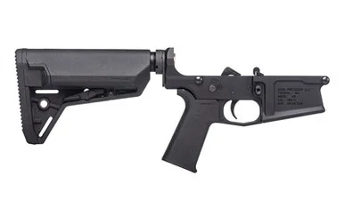 The M5 Complete Lower Receiver is the perfect base for your custom big-bore AR build. This complete lower features our custom designed M5 Lower Receiver and is upgraded to include a MOE SL® Grip and MOE® SL-S™ Carbine Stock. Save when you buy it complete and let our specialists do the installation for you! Our M5 Lower Receiver sets the standard for big-bore AR builds. This custom designed enhanced forging is machined from 7075-T6 Aluminum and works with standard AR308 components and magazines. It has been engineered with upgraded features, including a threaded bolt catch roll pin, integrated trigger guard, upper tension screw, threaded takedown pin detent recess and increased magwell flare. It uses custom takedown and pivot pins as well as an extended magazine catch button which are included in this assembly.Includes: M5 Lower Receiver Magpul MOE SL Grip Magpul MOE SL-S Stock Lower Parts Kit Carbine Receiver Extension M5 Buffer and Spring