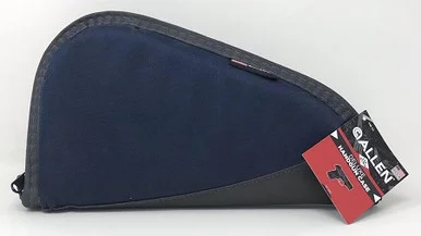 This Deluxe Handgun Case is made of navy and gray material with a thick foam lining and an easy clean, non-absorbent lining. This locking handgun case can hold handguns up to 8 inches long. Features a locking zipper. Made in the USA.