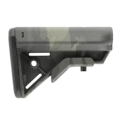 B5 Systems Bravo Stock – Multicam BlackrStep into the next generation with the B5 Systems Bravo Stock, now available in a striking Multicam Black. This refined version of the esteemed Enhanced SOPMOD offers a leaner design without compromising pivotal features. It boasts the beloved SOPMOD cheekweld, a singular anti-rotation quick disconnect sling mount, a no-slip cushioned buttpad, and an enhanced suregrip stock latch. The Bravo presents a more sleek profile by forgoing the Sopmod’s storage capability. Its unique rear contour ensures swift and consistent positioning against the shoulder and cheek. Manufactured to military standards using premium materials and finishes, this stock guarantees longevity and top-tier performance. Adorned with color-coordinated steel hardware, overmolded steel anti-rotational QD sling mounts, and precise internal tensioners, the Bravo Stock in Multicam Black is a functional masterpiece and a visual delight. It perfectly fits Milspec carbine receiver extensions. Proudly crafted in the USA.rFeatures:rrErgonomic cheek weld.rColor-matched steel hardware.rOvermolded steel anti-rotational QD sling mounts.rFixed sling mounts Internal tensioners.rNo slip cushioned butt pad.rSuregrip stock latch.rMade of Milspec materials and finishes.rFits Milspec carbine receiver extensions