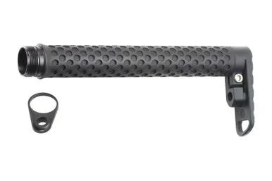 Battle Arms Sabretube Mid Length QD End Plate Lightweight Buttstock KitThis Exclusive Battle Arms Development Mid Length Lightweight Fixed Butt Stock Combo / QD End Plate is the perfect package for installing a buttstock on your standard AR15 lower receiver. Battle Arms Development built these AR15 Stocks from durable aircraft-grade aluminum that’s hard coat anodized for enhanced strength and resistance to corrosion and abrasion. Each Exclusive Battle Arms Development Mid Length Lightweight AR-15 Buttstock Kit features a unique, dimpled-pattern design that does not require a castle nut unlike heavier options. Pick up this Exclusive Battle Arms Development SABERTUBE QD Lightweight Stock Kit to upgrade your rifle build with a sturdy stock that is easy to install and comfortable to use at the range or on the hunting groundsFeatures:Midlength 8.25in Length Of PullDiameter: 1.25inWeight: Tube only Mid 4.2ozFunctional, clean and elegant dimpled pattern design.The most unique buffer tube on the market!Precision CNC from billet 6061 Aircraft Grade AluminumMilSpec Type III Class 2 Hard Anodized BlackUnique, Lightweight and Functional Dimpled Pattern DesignMilSpec Carbine Buffer and Buffer Spring CompatibleOne size fits most Mid Length Buffer TubeCompatible with all “Standard” AR-15 Lower Receivers (no need for captive rear takedown pin detent spring)Lightweight design eliminated the need for Castle NutRequires BAD-QDEP End Plate and BAD-LBS Lightweight Butt Stock